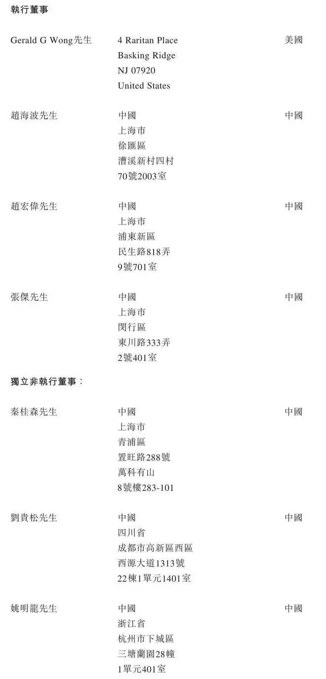 剑桥科技执行董事分别为Gerald G Wong、赵海波、赵宏伟、张杰,独立非执行董事分别为秦桂森、刘贵松、姚明龙、袁淑仪女士。