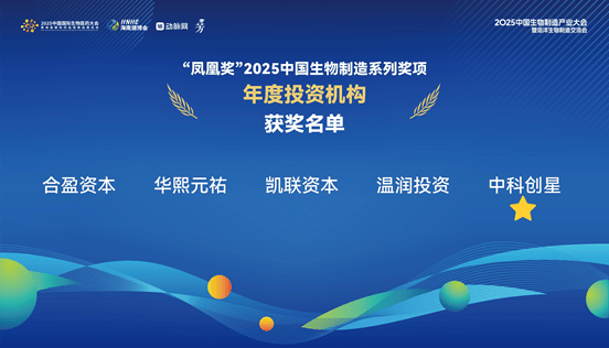 12月20日,由动脉网、芳博士主办的 “2025中国生物制造产业大会暨海洋生物制造交流会”成功举行。本次大会正式发布“凤凰奖”2025中国生物制造系列奖项,中科创星荣获“年度投资机构”奖项。