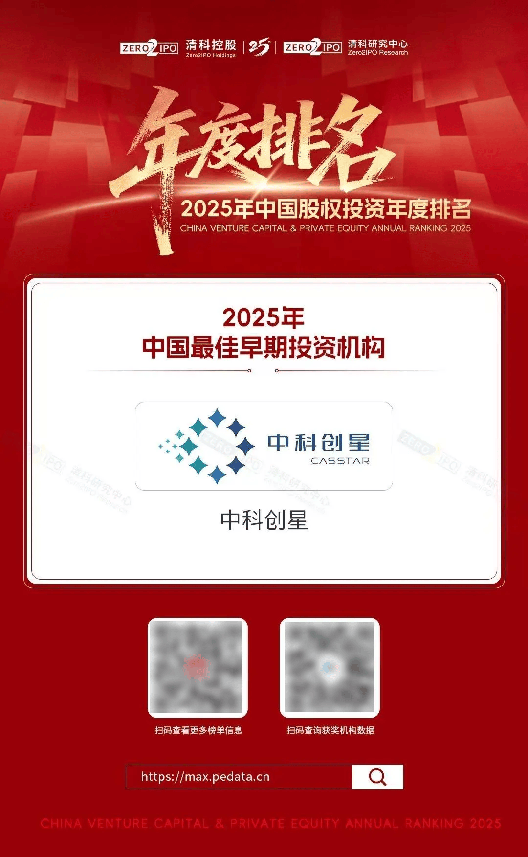 12月29日,母基金研究中心2025年度榜单隆重揭晓,中科创星荣获“2025年中国早期早期投资基金TOP(第一名)”。