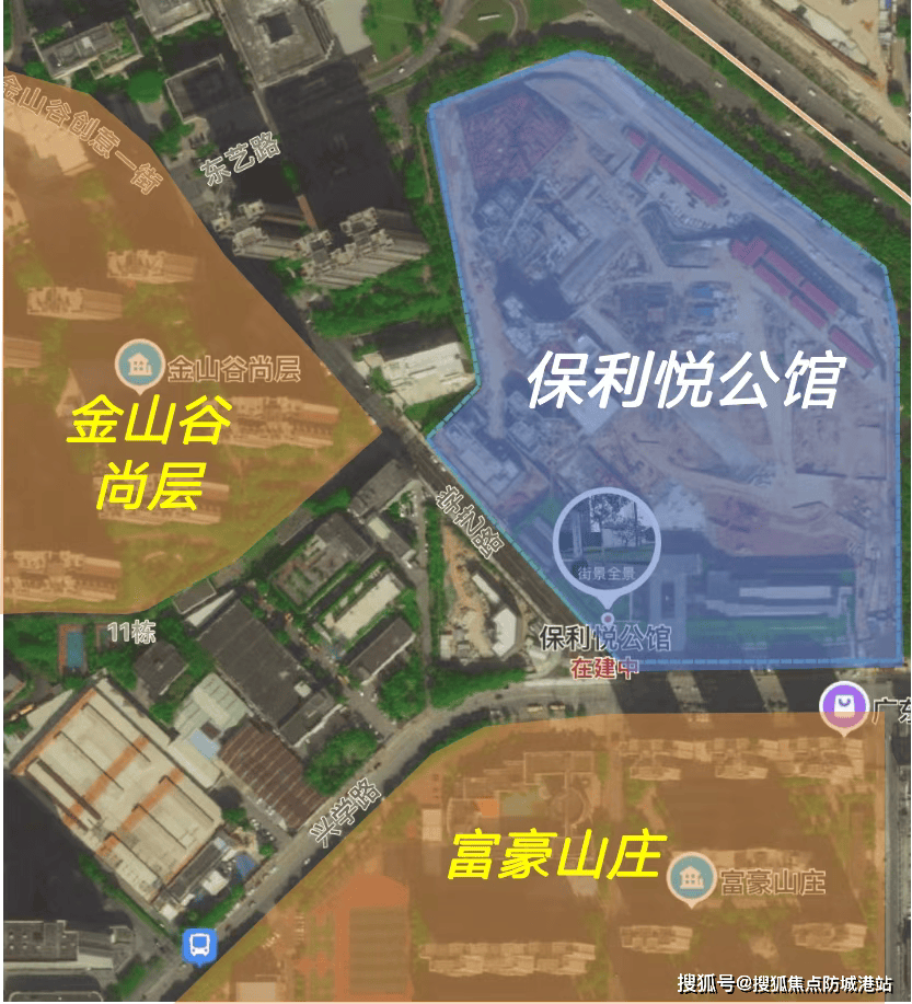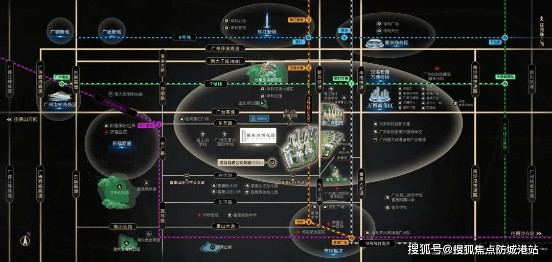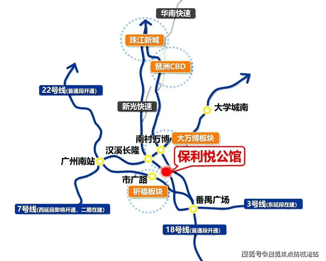 保利悦公馆所处的市广路板块,虽不属于万博核心范围,但凭借长期的发展积淀,已成为番禺区成熟度极高的居住板块。板块内聚集了招商金山谷、富豪山庄、中铁建花语岭南等多个成熟社区,居住氛围浓厚,烟火气十足,各类基础生活配套早已落地完善,为居民提供了便捷的生活体验。从板块发展脉络来看,市广路板块的崛起得益于其得天独厚的地理位置——紧邻万博商务CBD与长隆旅游度假区,既能享受核心商圈的产业辐射与配套红利,又能避开核心区域的高密度开发与高房价压力。而真正为板块注入强劲发展动力的,是紧邻项目的里仁洞村旧改工程。