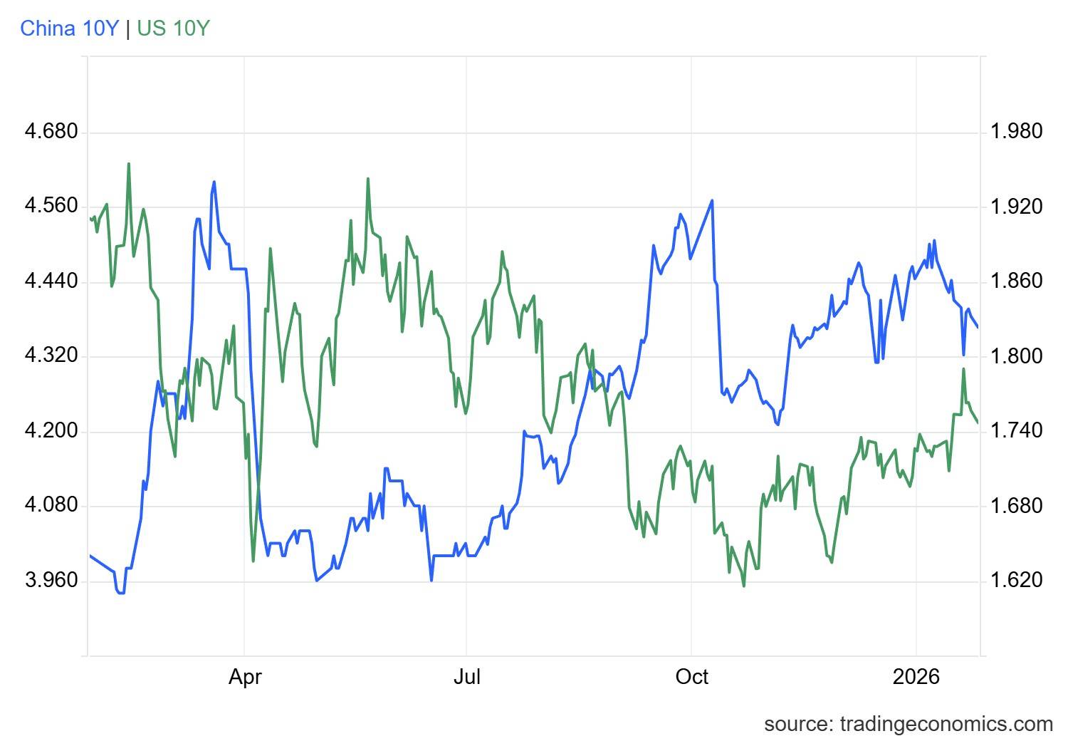 截至1月23日,中国二年期国债收益率为1.40%,中国十年期国债收益率为1.83%。