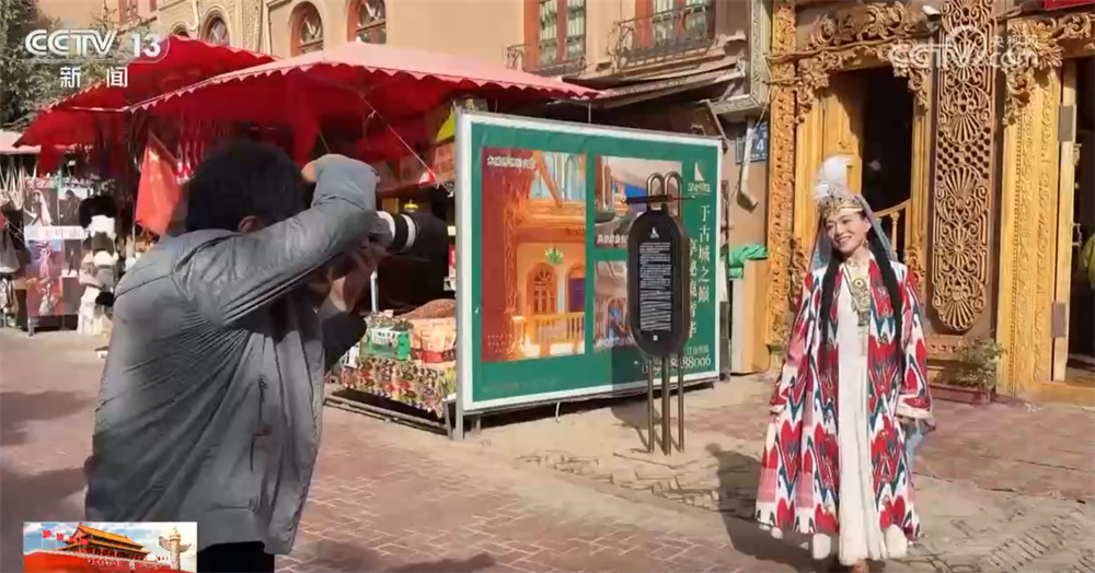 在新疆喀什古城景区,这几天每天都举行开城仪式,迎接来自全国各地的游客。古城街巷里更是挂满了国旗,让人们感受到浓浓的国庆氛围。 景区人气火爆也带来商业机遇,身着民族传统服饰的游客随处可见,旅拍摄影师则在一旁记录。