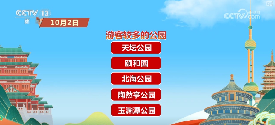 其中,天坛公园、颐和园、北海公园吸引不少游客前往,陶然亭、玉渊潭等公园则成为市民游客短途出行的首选。
