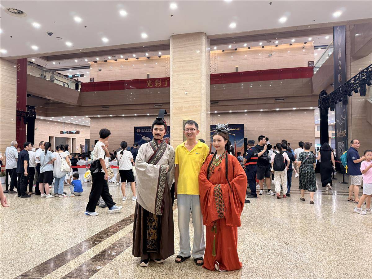 10月6日晚,现场观众与身着古装的NPC合影留念。(湖北日报全媒记者喻煜)