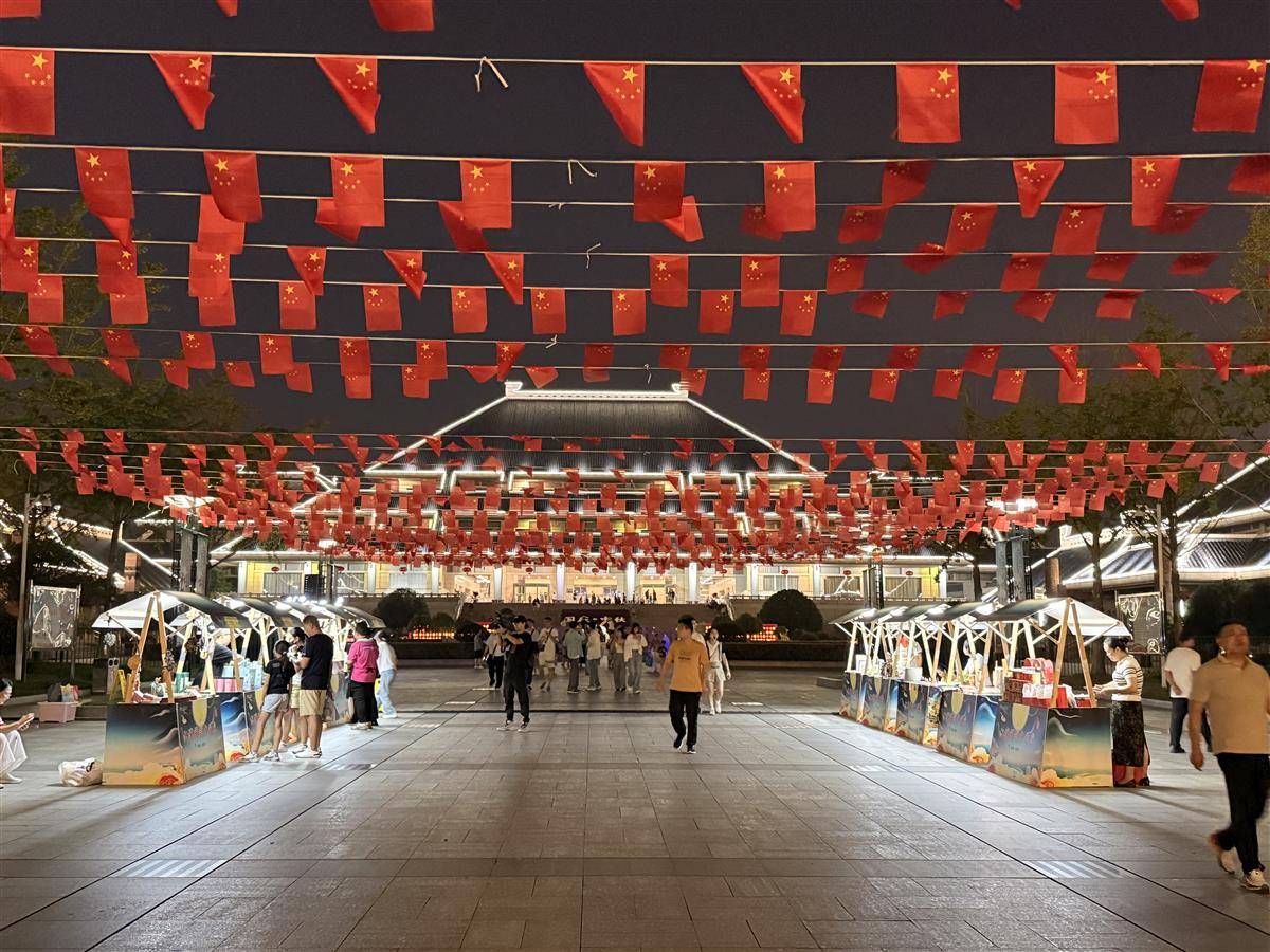 10月6日晚,演出结束后观众在赏月市集驻足挑选文创好物。(湖北日报全媒记者喻煜)