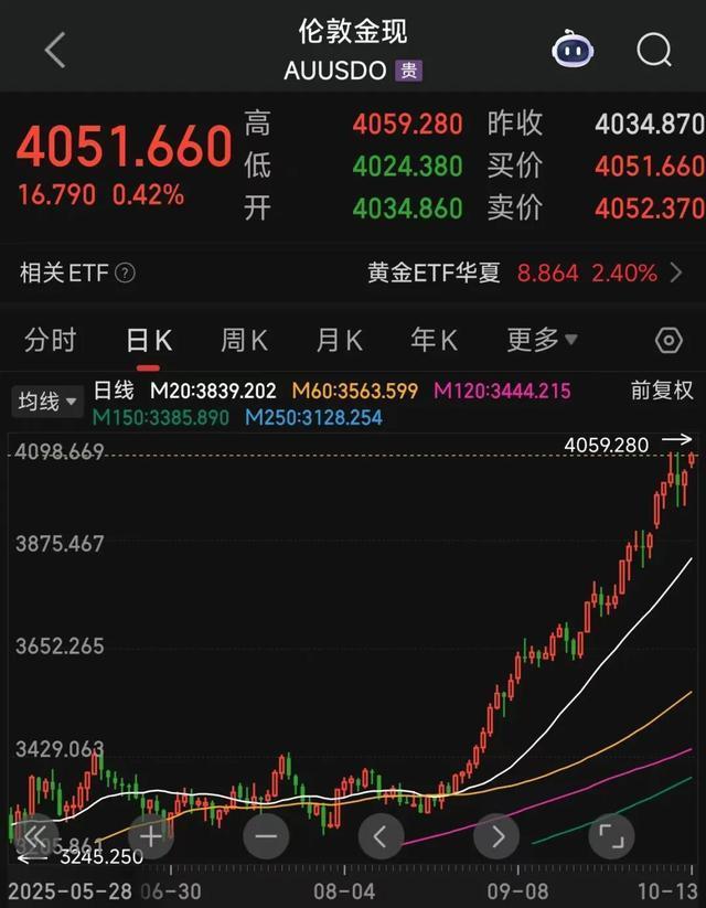 2025年“双节”假期期间,全球黄金市场迎来了一轮“史诗级”行情——伦敦金现价格一路飙升至4040.42美元/盎司,历史性地突破了4000美元大关。国际金价年内累计涨幅已超过50%。