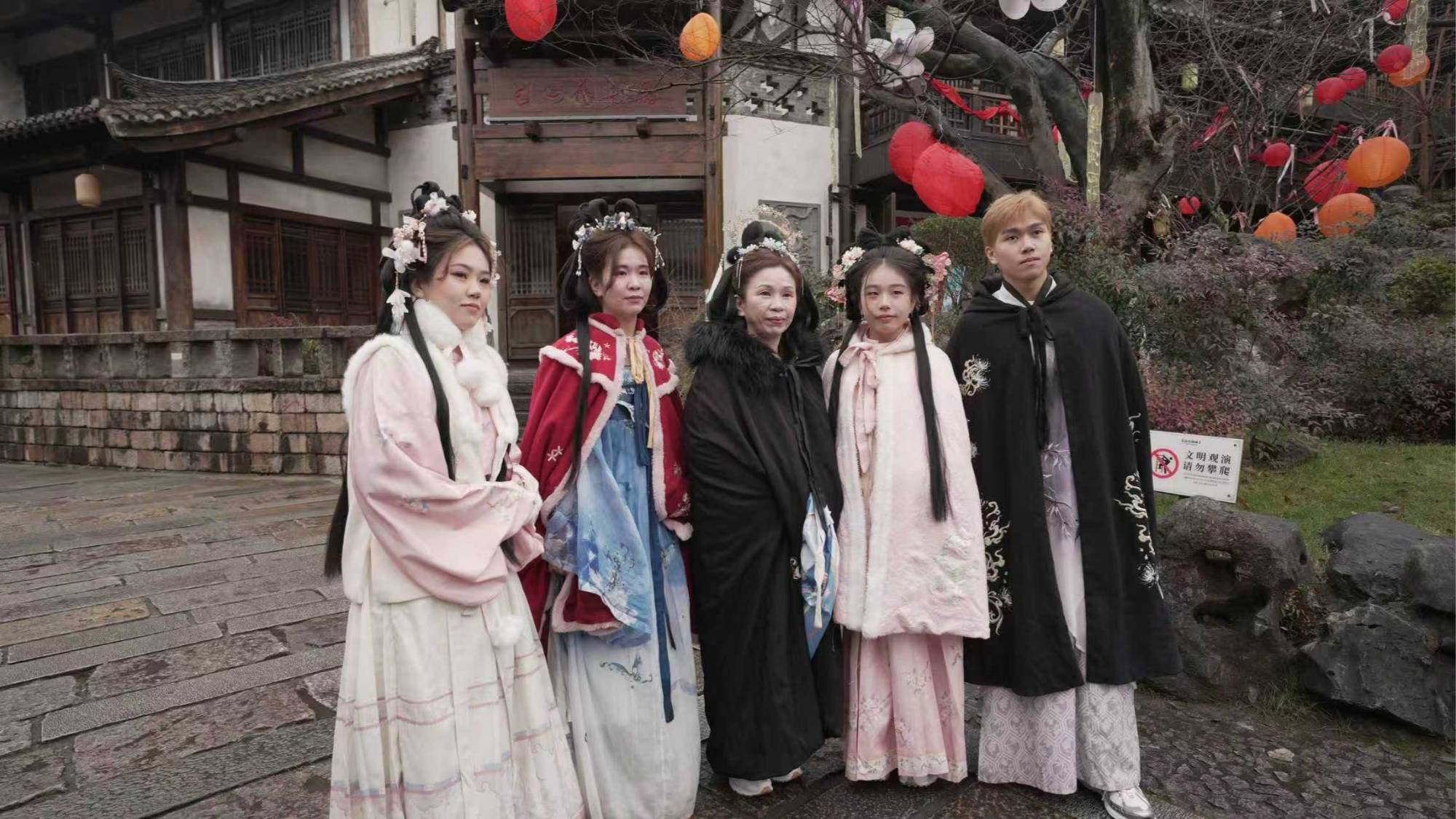 非遗体验环节同样精彩纷呈,成为中外文化交流的重要纽带。马来西亚的游客们来到景区换上传统汉服,在景区纸花阵内,刻制带有马年元素的窗花,在指尖的灵动操作中,读懂非遗金坛刻纸的匠心与底蕴,深刻感受中国年“辞旧迎新”的民俗内涵与文化深意。