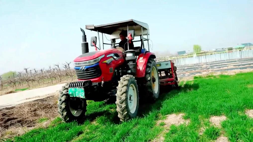 眼下,陕西省华阴市各地群众抢抓农时,积极开展麦田春灌、施肥、除草等田间管理工作。