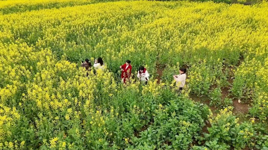 初春时节,湖北阳新县的数十万亩油菜进入初花期。不少游客来到这里,拍照打卡,感受春日美景。
