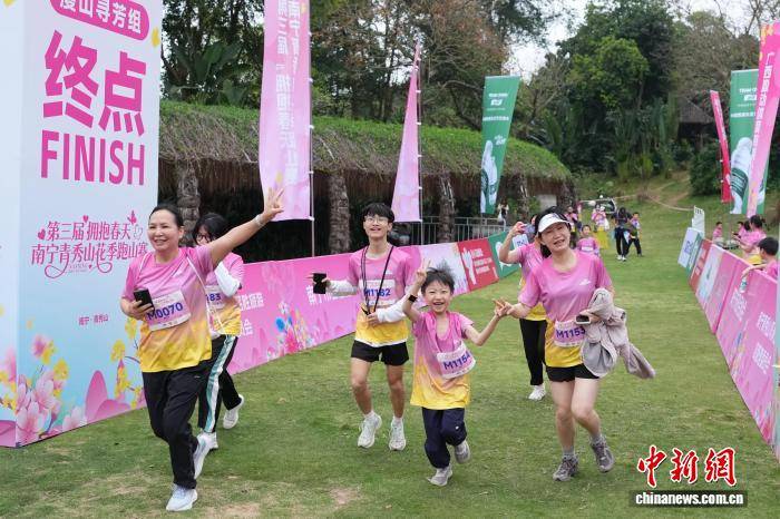 这场春日盛会吸引了大批青年群体参与。人群中,28岁的南宁白领黄莹做完拉伸,开启4公里“漫山寻芳”之旅。“上周连续加班,今天特意来山里透口气,‘放空’自己。”她说。