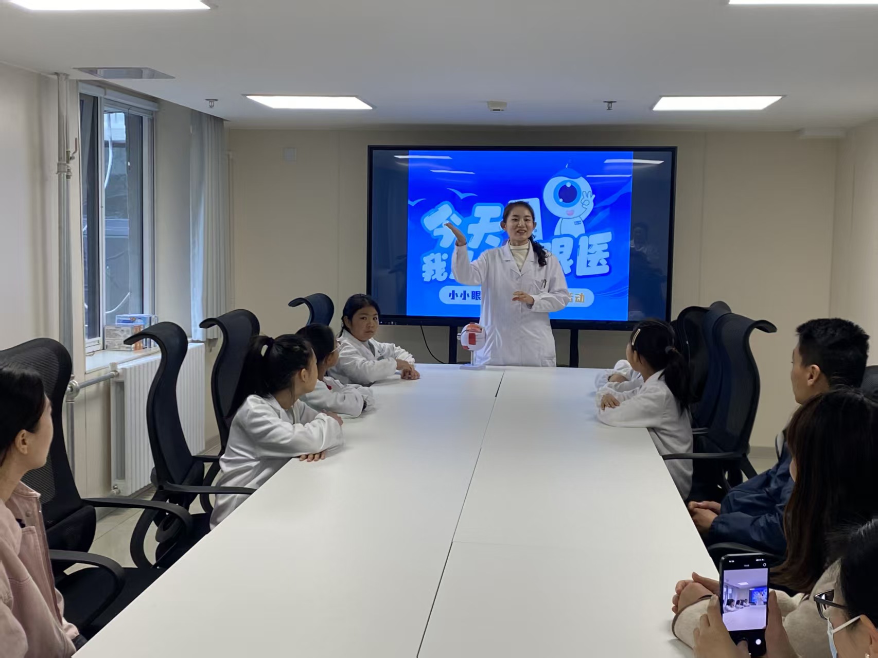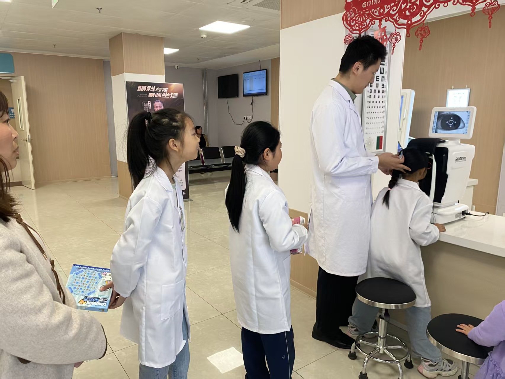 活动现场,在家长的陪伴下,孩子们签下自己的名字,随后换上洁白的“小医生”制服,佩戴听诊器、胸牌,仪式感十足的“换装变身”环节瞬间点燃了孩子们的参与热情,在医护人员的陪伴下,全体“小医生”宣读《医师宣言》,“我志愿成为一名‘眼科小医生’,认真学习护眼知识,守护自己和他人的视力健康!”铿锵有力的誓言,让孩子们建立起“医者责任”的认知。随后,医院的眼科专家团队为孩子们带来了一场别开生面的趣味课堂,通过专业的眼科知识分享生动讲解了近视的成因、危害及科学用眼方法,在医护人员的指导下,孩子们化身“眼科医生”,为同伴和家长进行视力检查,他们认真指引“患者”看视力表,仔细记录检查数据,俨然一副“小专家”的模样。“叔叔,您的视力有点模糊,平时要注意少看手机哦!”一名“小医生”对体验的家长说道,稚嫩的话语中透着专业的认真。家长们也在医护人员的指导下学习了家庭眼部护理的正确方法。“以前总觉得护眼就是少看手机,今天才知道还有这么多专业的护理手段。”一位参与体验的家长感慨道。